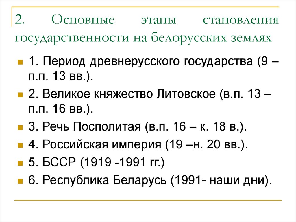 2. Государственность на белорусских землях.