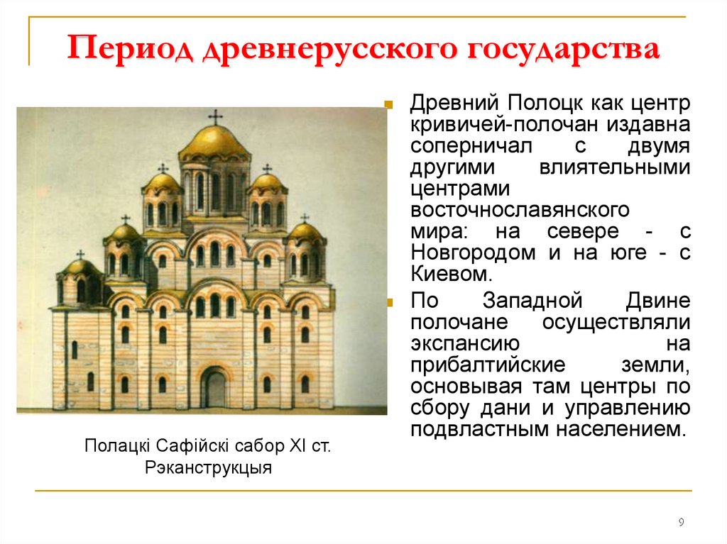 Период древнерусского государстваПолацкі Сафійскі сабор ХІ ст.