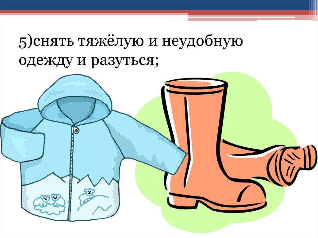 5)снять тяжёлую и неудобнуюодежду и разуться;