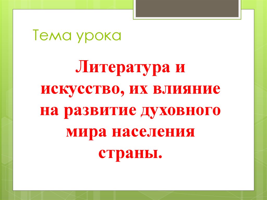 Литература и искусство, их влияние на развитие духовного мира населения страны