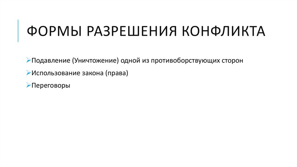 ФОРМЫ РАЗРЕШЕНИЯ КОНФЛИКТАПодавление (Уничтожение) одной из противоборствующих сторон