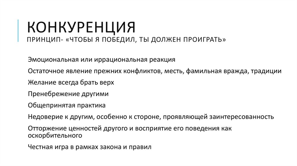 КОНКУРЕНЦИЯПРИНЦИП- «ЧТОБЫ Я ПОБЕДИЛ, ТЫ ДОЛЖЕН ПРОИГРАТЬ»