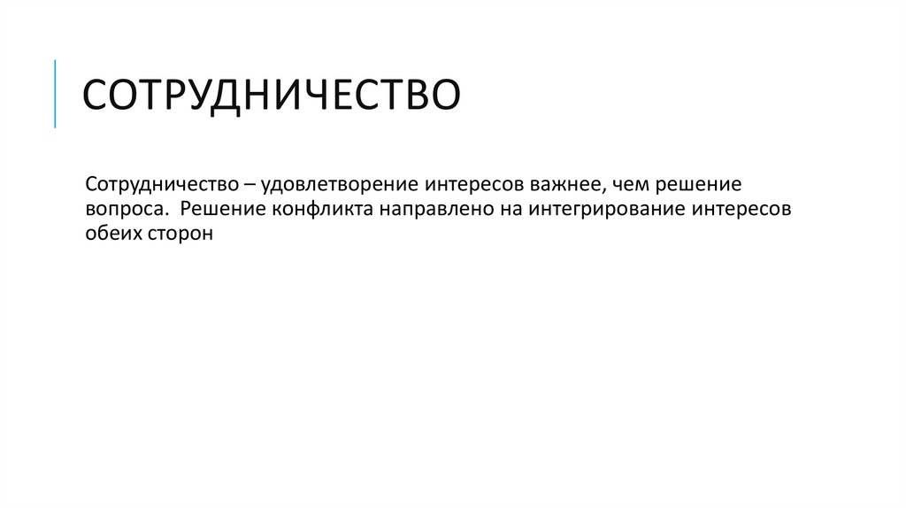 СОТРУДНИЧЕСТВОСотрудничество – удовлетворение интересов важнее, чем решение