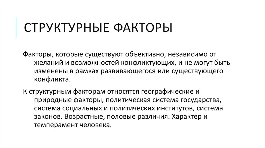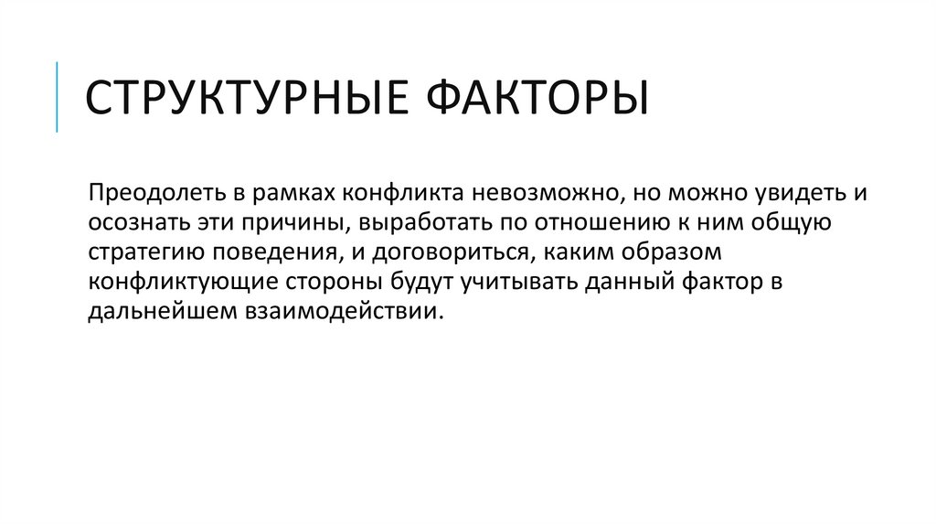 СТРУКТУРНЫЕ ФАКТОРЫПреодолеть в рамках конфликта невозможно, но можно увидеть и