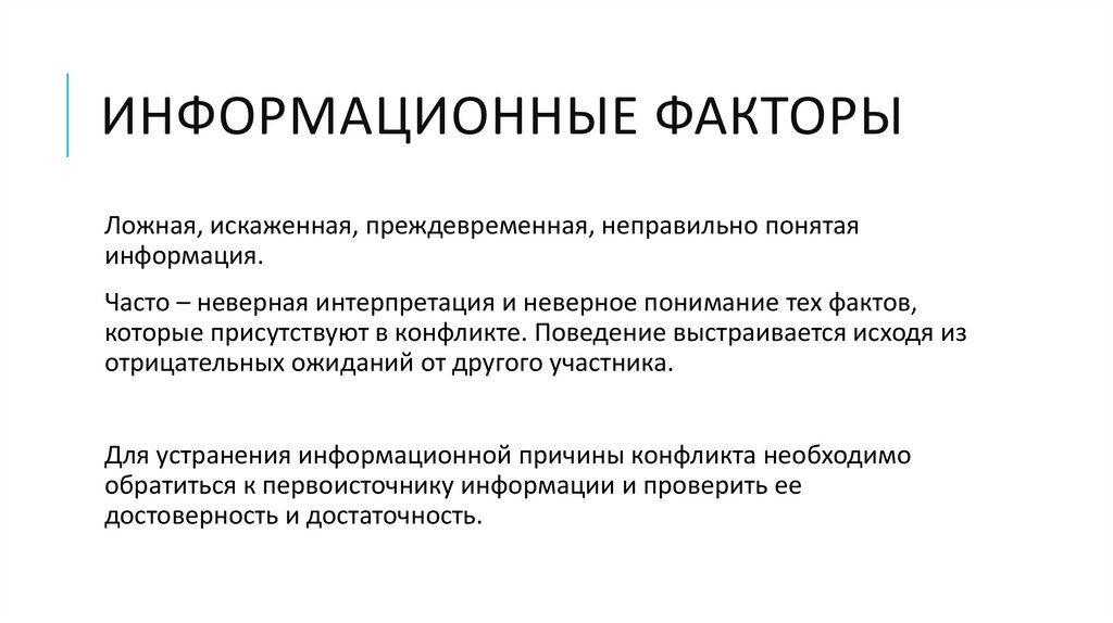 ИНФОРМАЦИОННЫЕ ФАКТОРЫЛожная, искаженная, преждевременная, неправильно понятая