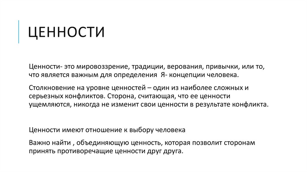 серьезных конфликтов. Сторона, считающая, что ее ценности