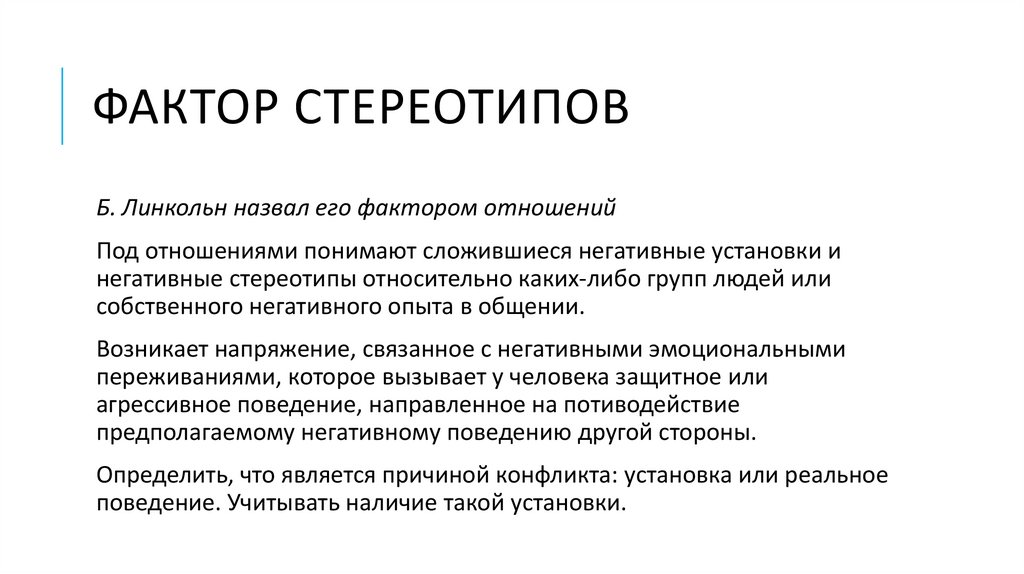 ФАКТОР СТЕРЕОТИПОВБ. Линкольн назвал его фактором отношений