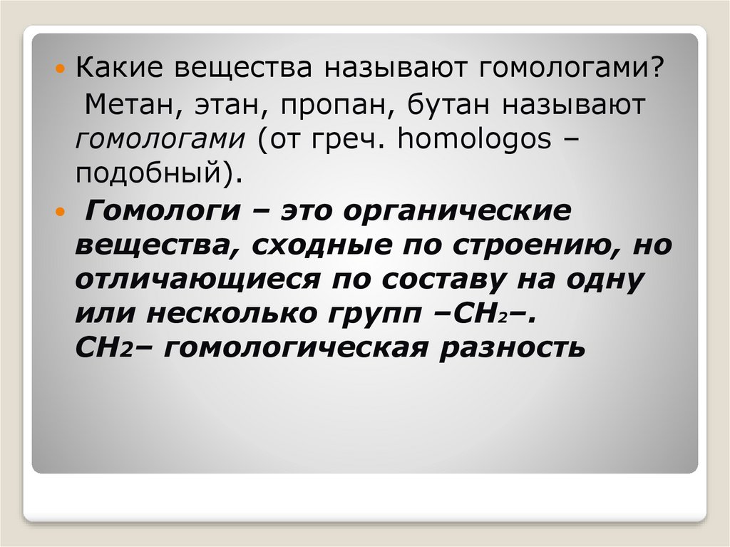 Какие вещества называют гомологами?Метан, этан, пропан, бутан называют