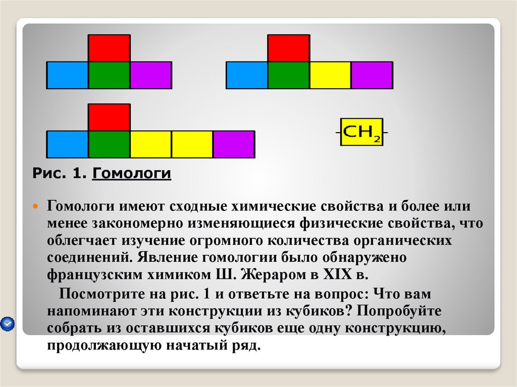 Рис. 1. ГомологиГомологи имеют сходные химические свойства и более или