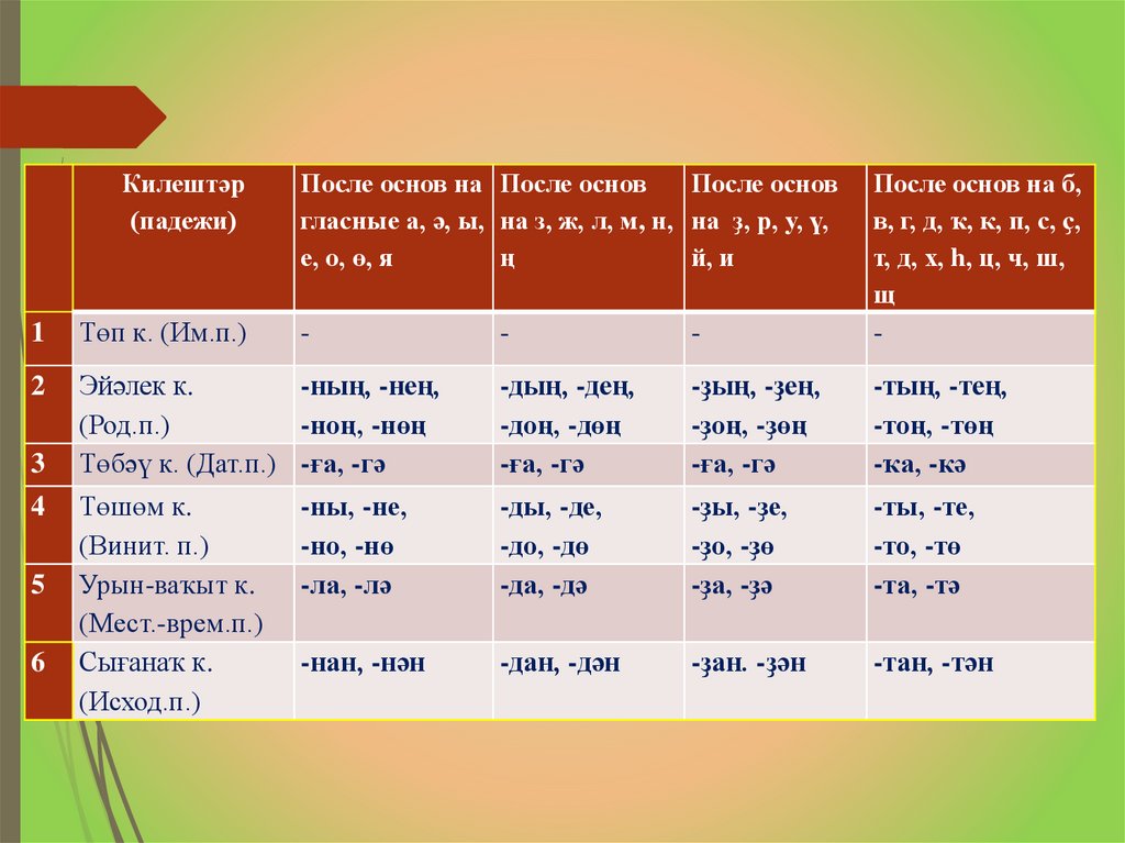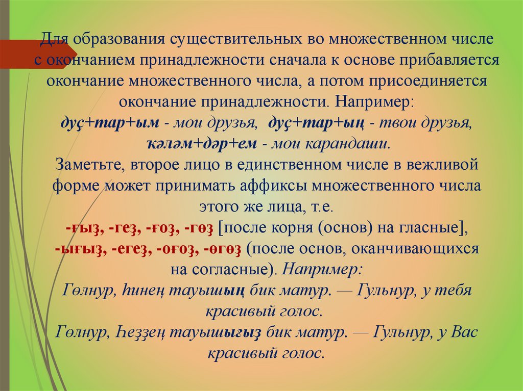 корню (основе) окончаний -лар (-ләр), -тар (-тәр),