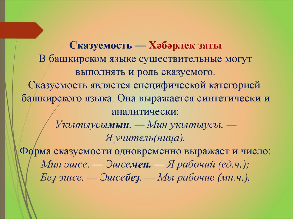Сказуемость — Хәбәрлек затыВ башкирском языке существительные могут