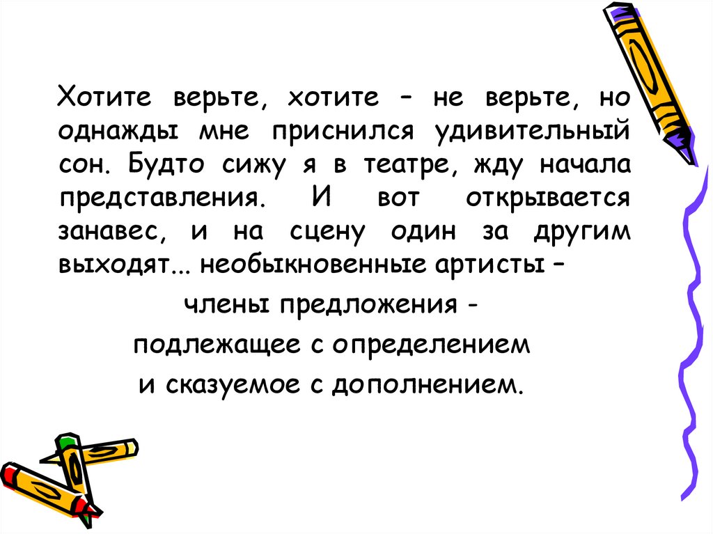 члены предложения подлежащее с определением