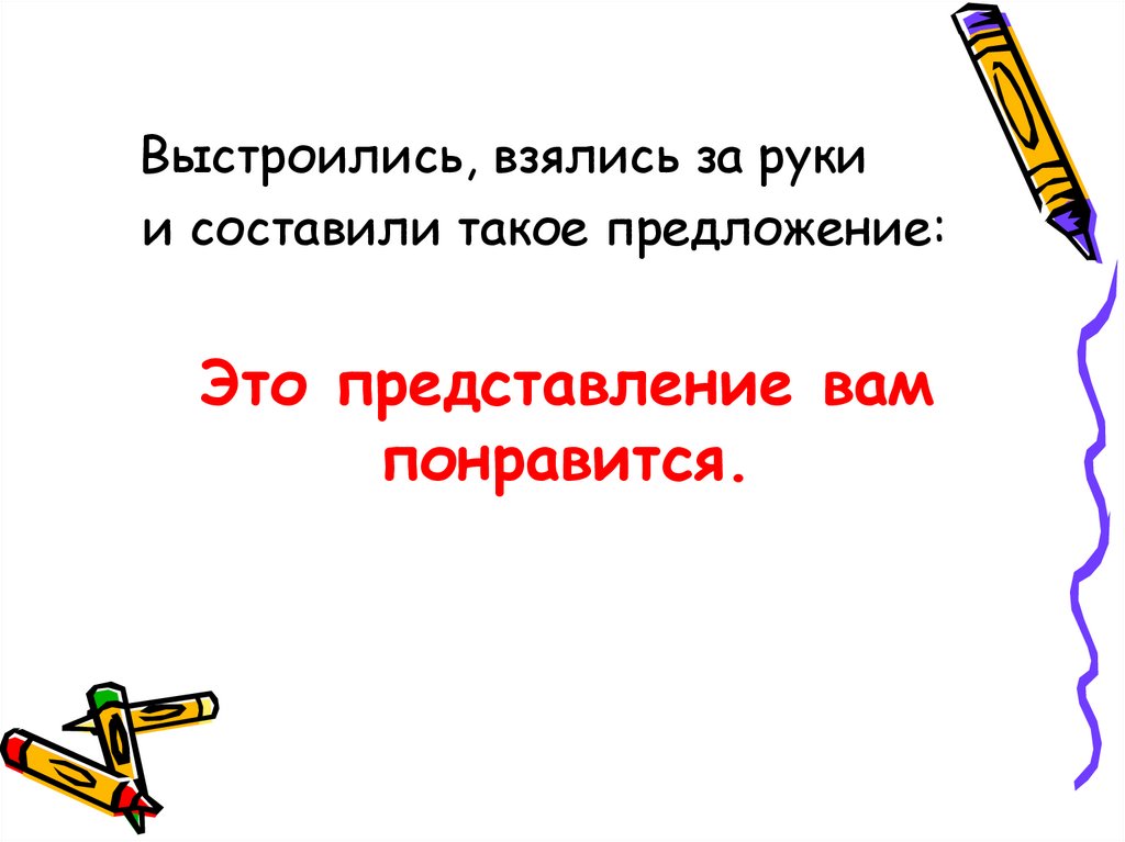 Выстроились, взялись за рукии составили такое предложение: