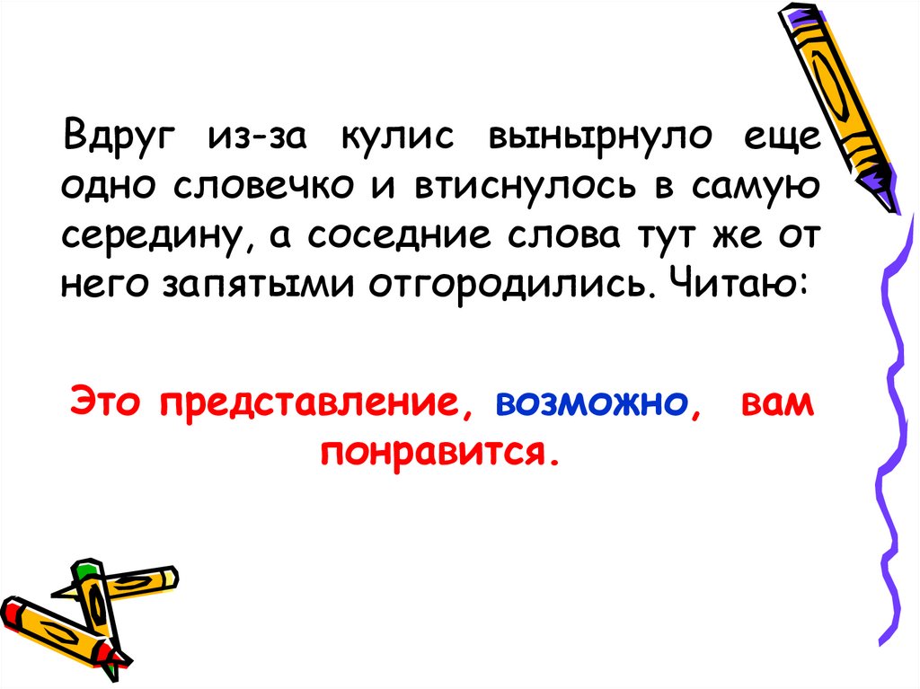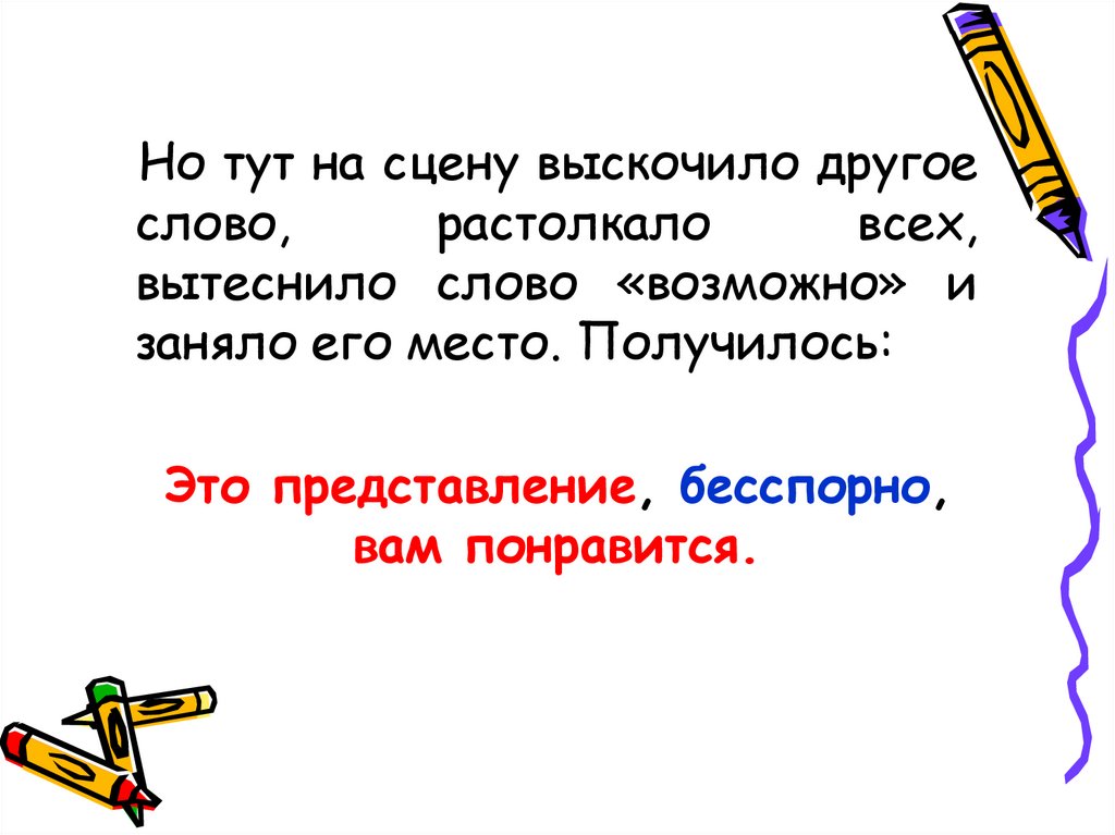 Вдруг из-за кулис вынырнуло ещеодно словечко и втиснулось в самую