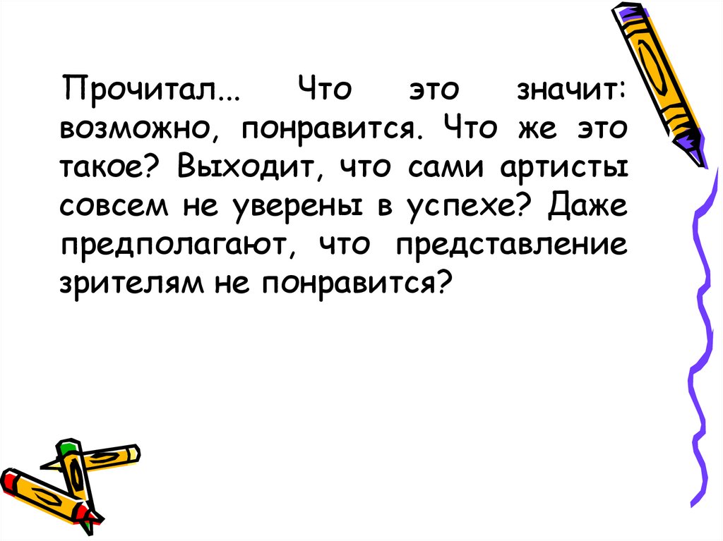 7. Извините, друзья, но мне это вовсе не понравилось. Что значит «бесспорно»? Ну и самоуверенность у этих артистов!