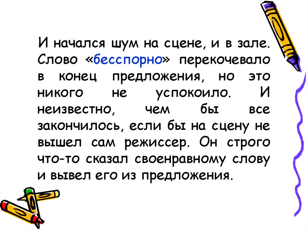 И начался шум на сцене, и в зале.Слово «бесспорно» перекочевало