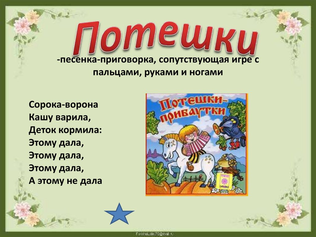 -песенка-приговорка, сопутствующая игре спальцами, руками и ногами