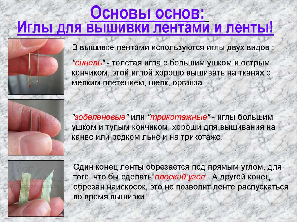 Для такого вида вышивки берется широкая и узкая лента, которая подходит к