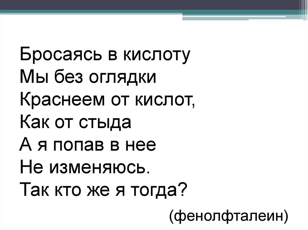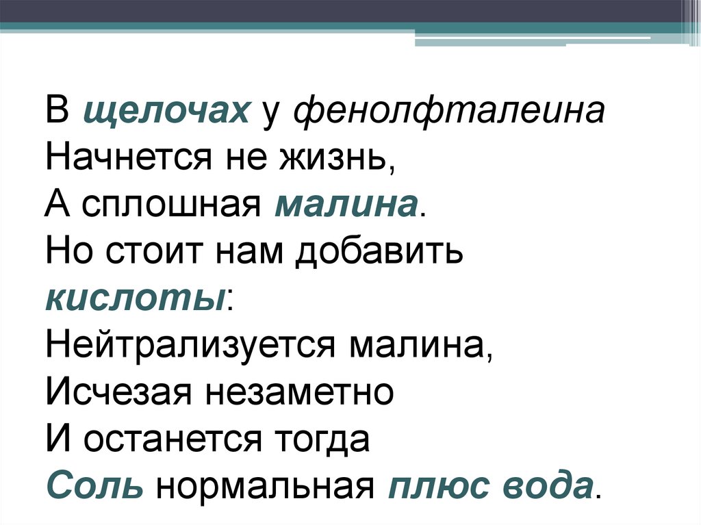 В щелочах у фенолфталеинаНачнется не жизнь,