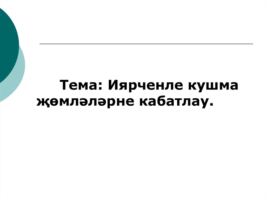 Тема: Иярченле кушмаҗөмләләрне кабатлау.