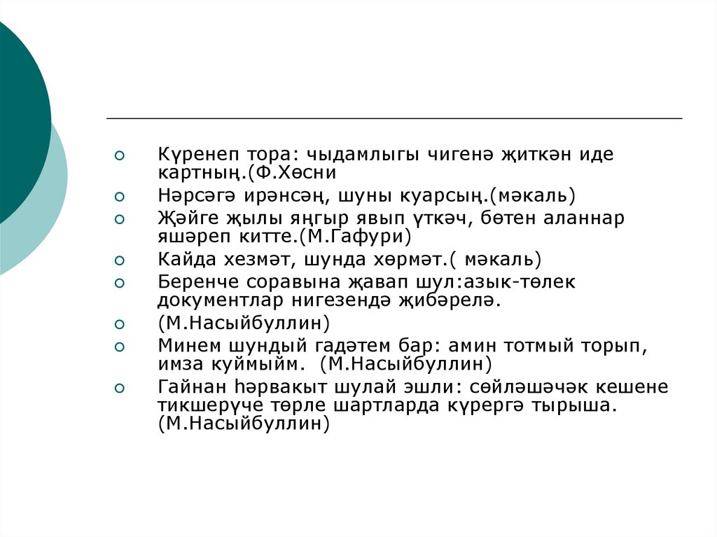 8.Өем минем яктырсын дип, ут элдердем шәмнәргә. (Л.Л.)