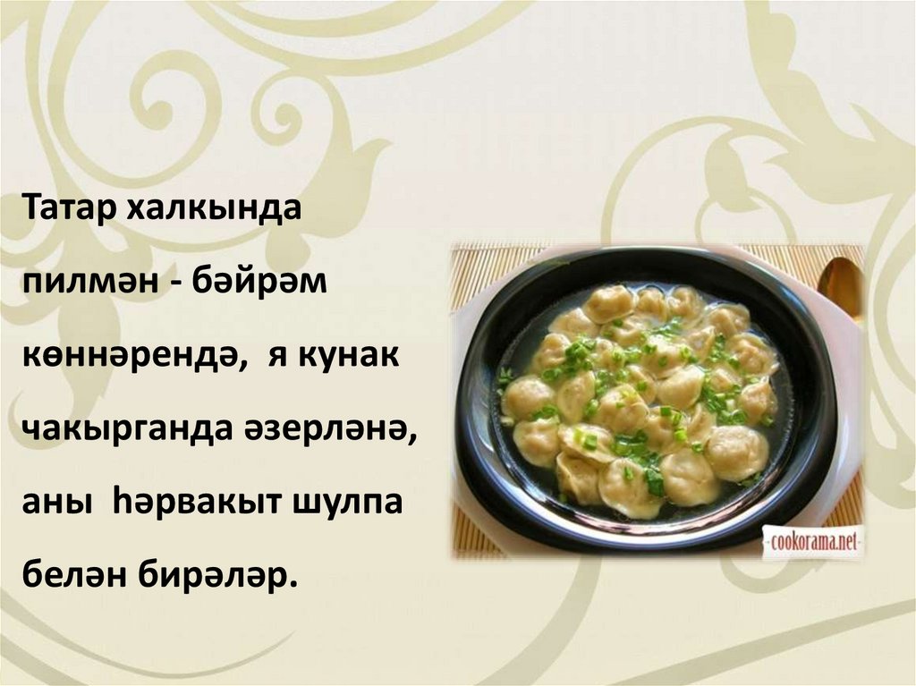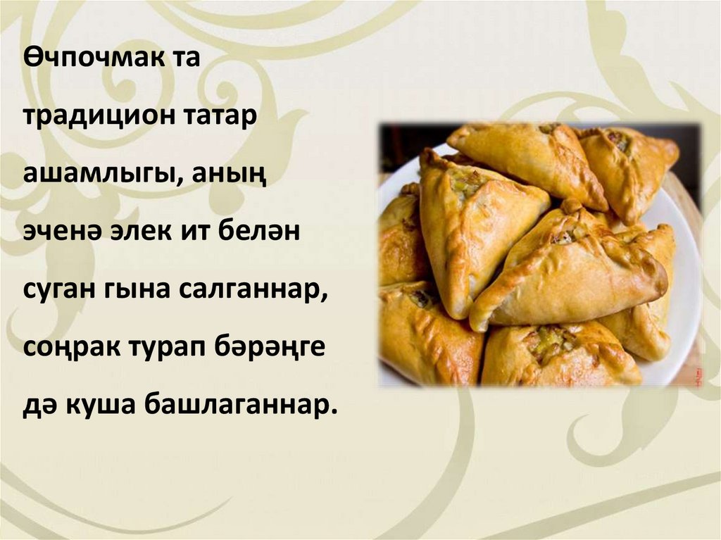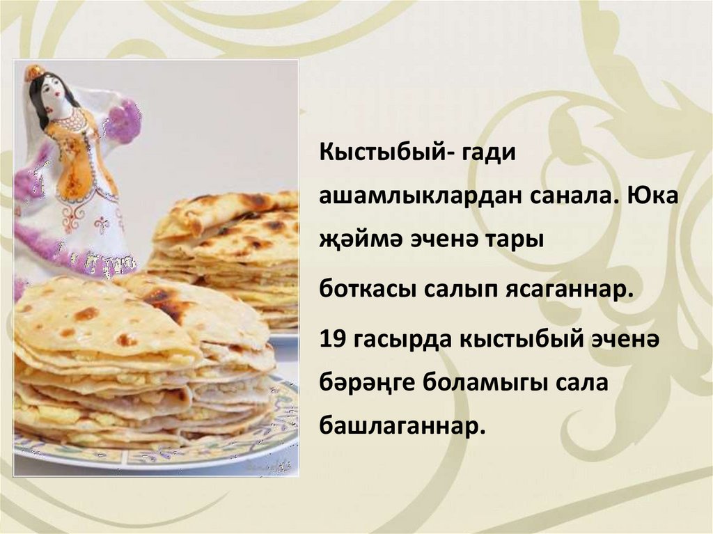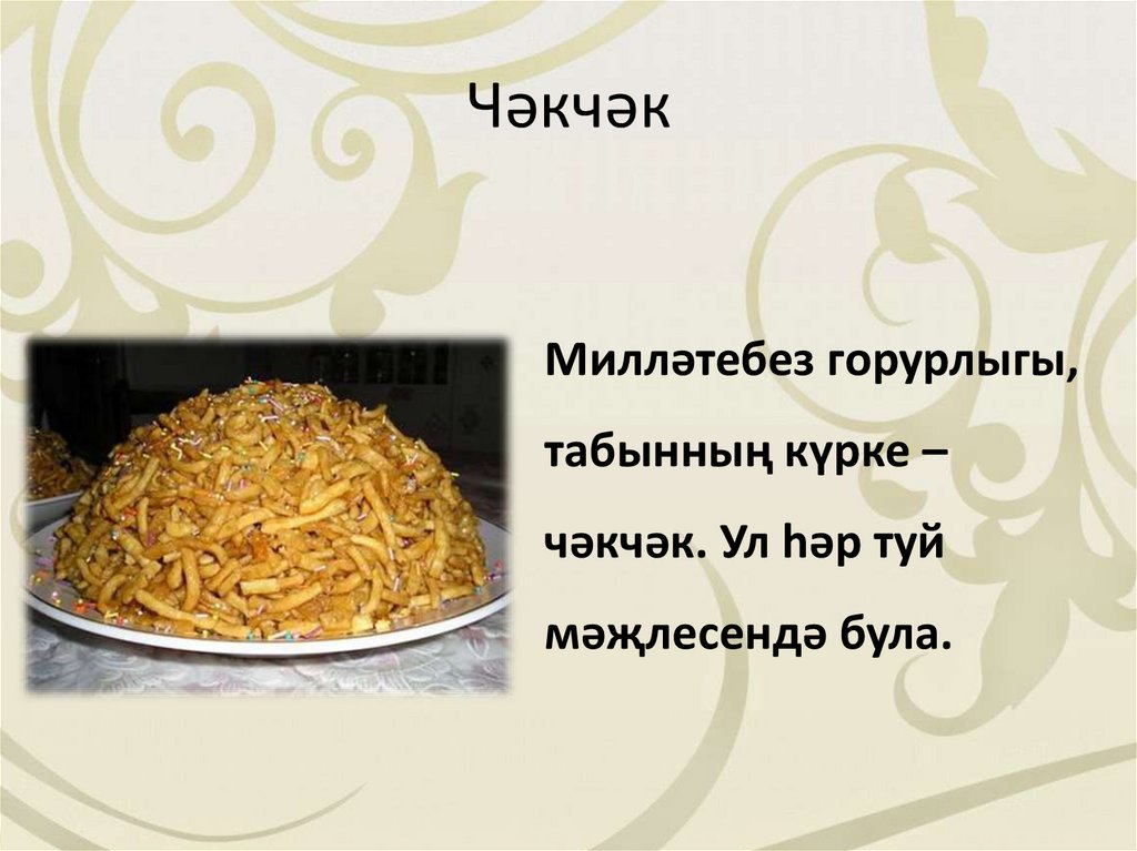 Татар халкы үз милли ашларына бик бай, hәмбөтен дөньяга үз ризыклары белән мәшhүр.