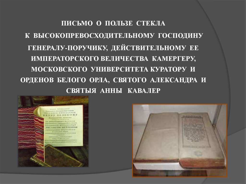 ПИСЬМО О ПОЛЬЗЕ СТЕКЛАК ВЫСОКОПРЕВОСХОДИТЕЛЬНОМУ ГОСПОДИНУ