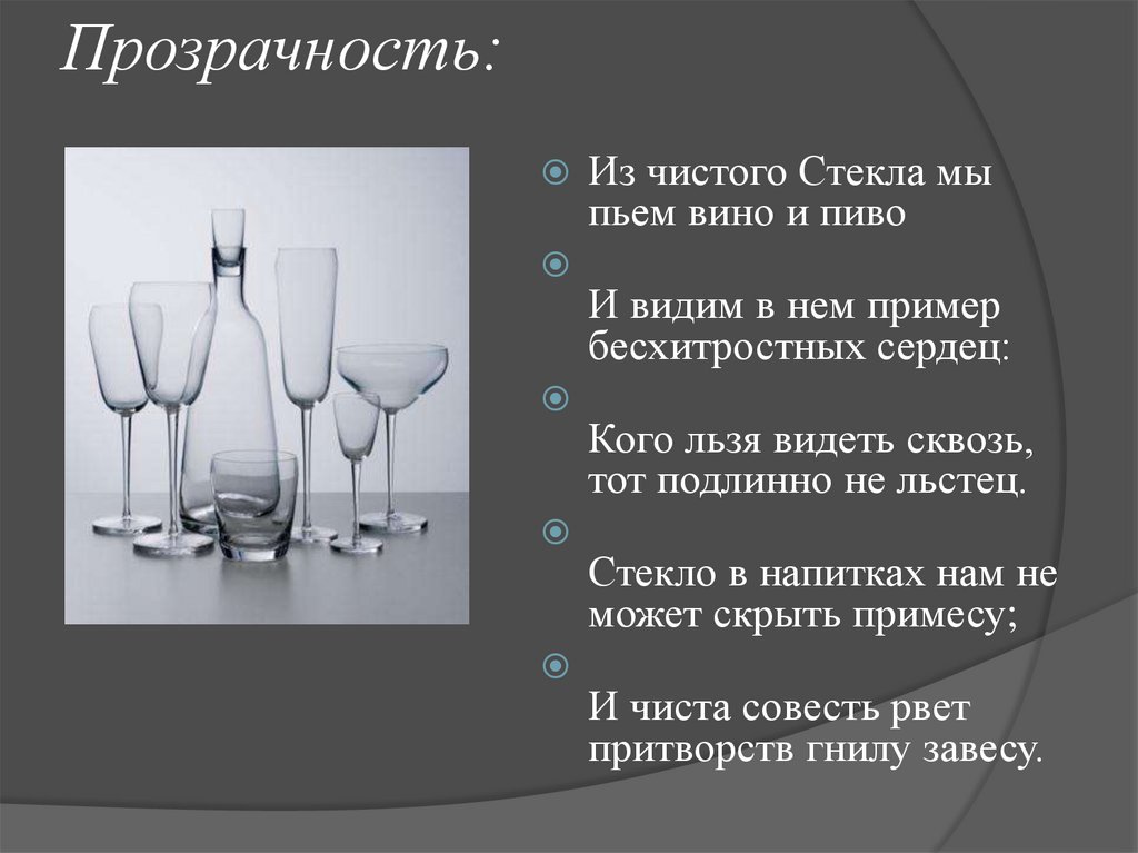 Прозрачность:Из чистого Стекла мы