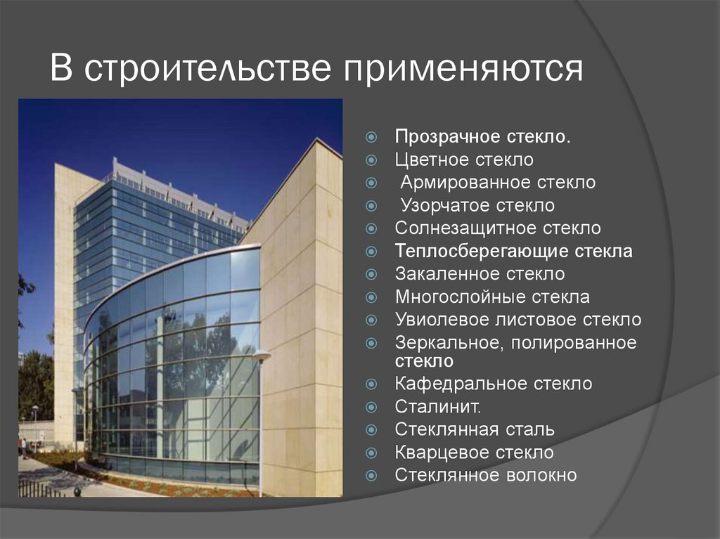 В строительстве применяютсяПрозрачное стекло.