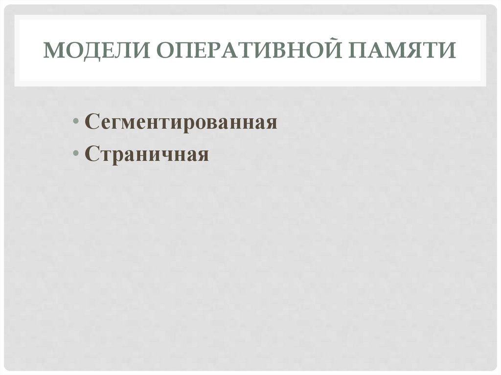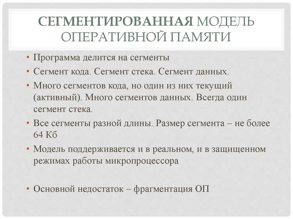 МОДЕЛИ ОПЕРАТИВНОЙ ПАМЯТИ• Сегментированная