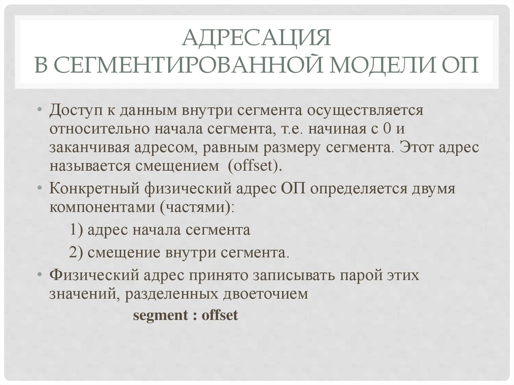АДРЕСАЦИЯВ СЕГМЕНТИРОВАННОЙ МОДЕЛИ ОП