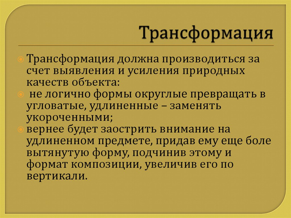 трансформация производится с помощью измененияи упрощения формы,