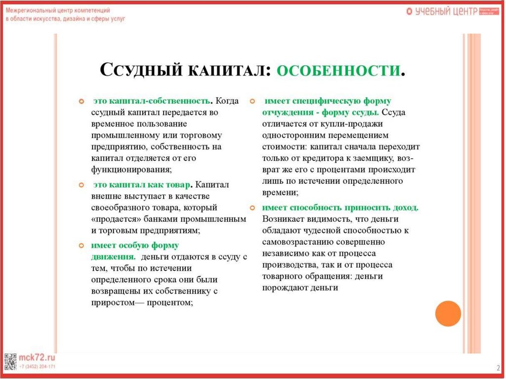 Особенности ссудного капитала
