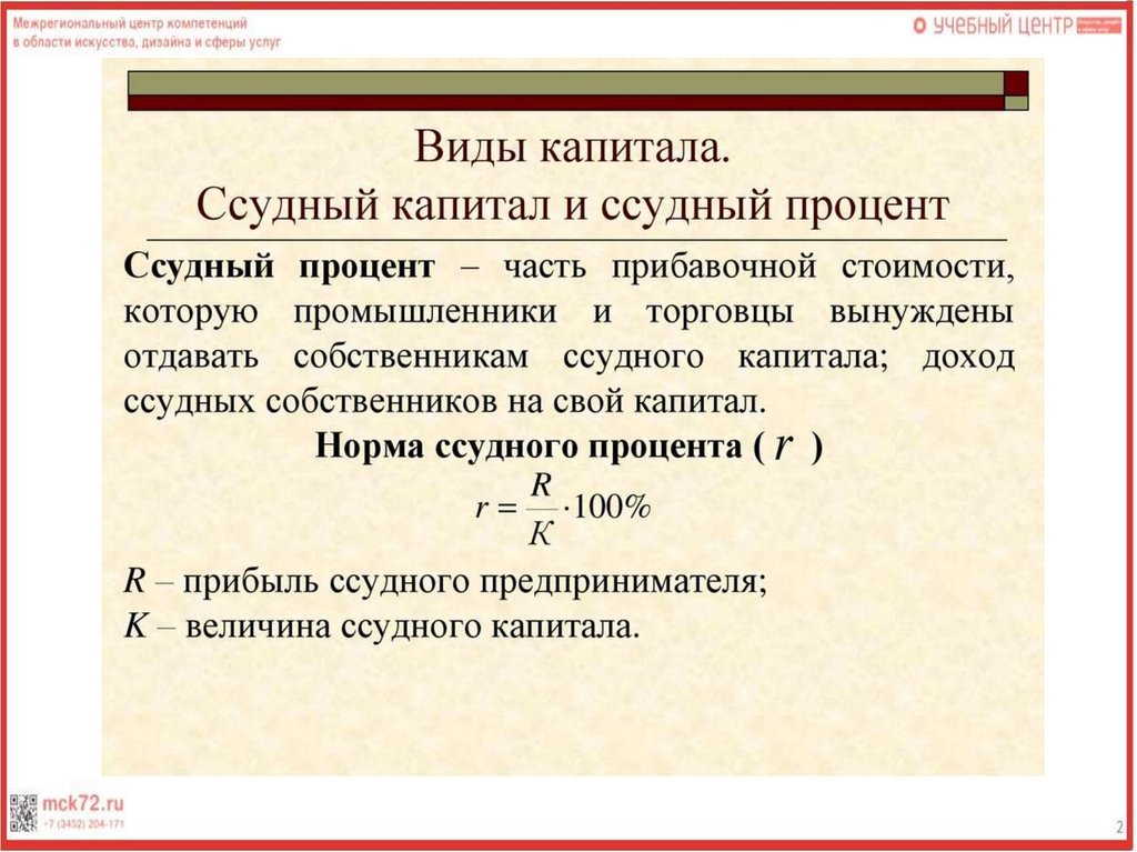 Ссудный капитал. Ссудный процент