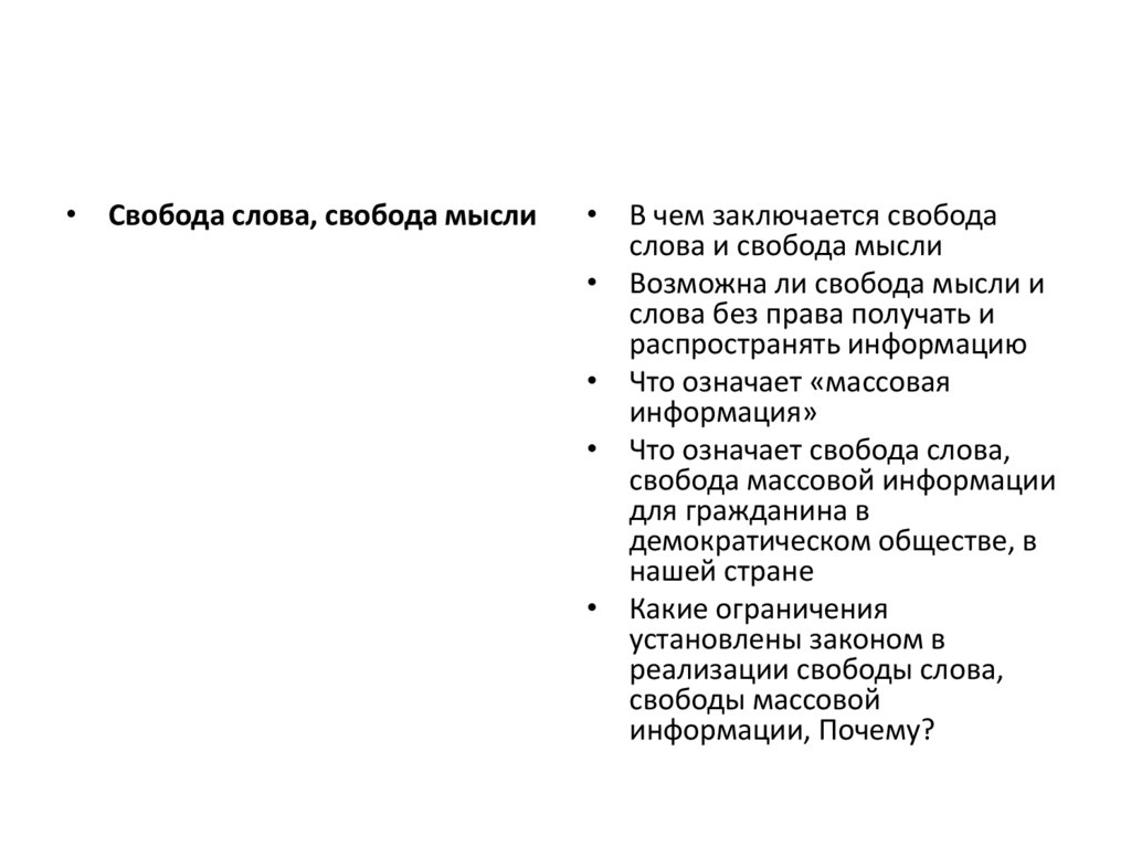• Свобода слова, свобода мысли• В чем заключается свобода