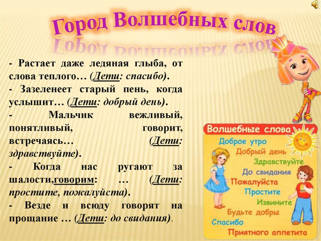 - Растает даже ледяная глыба, отслова теплого… (Дети: спасибо).