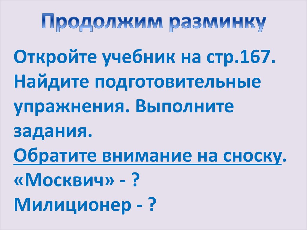 Откройте учебник на стр.167.Найдите подготовительные