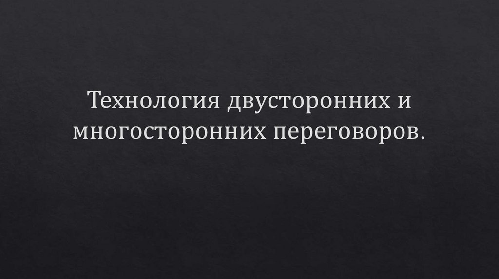 Технология двусторонних и многосторонних переговоров