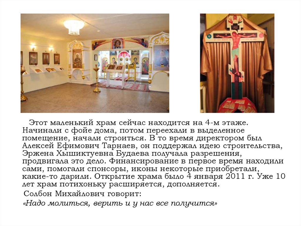 Этот маленький храм сейчас находится на 4-м этаже.Начинали с фойе дома, потом переехали в выделенное