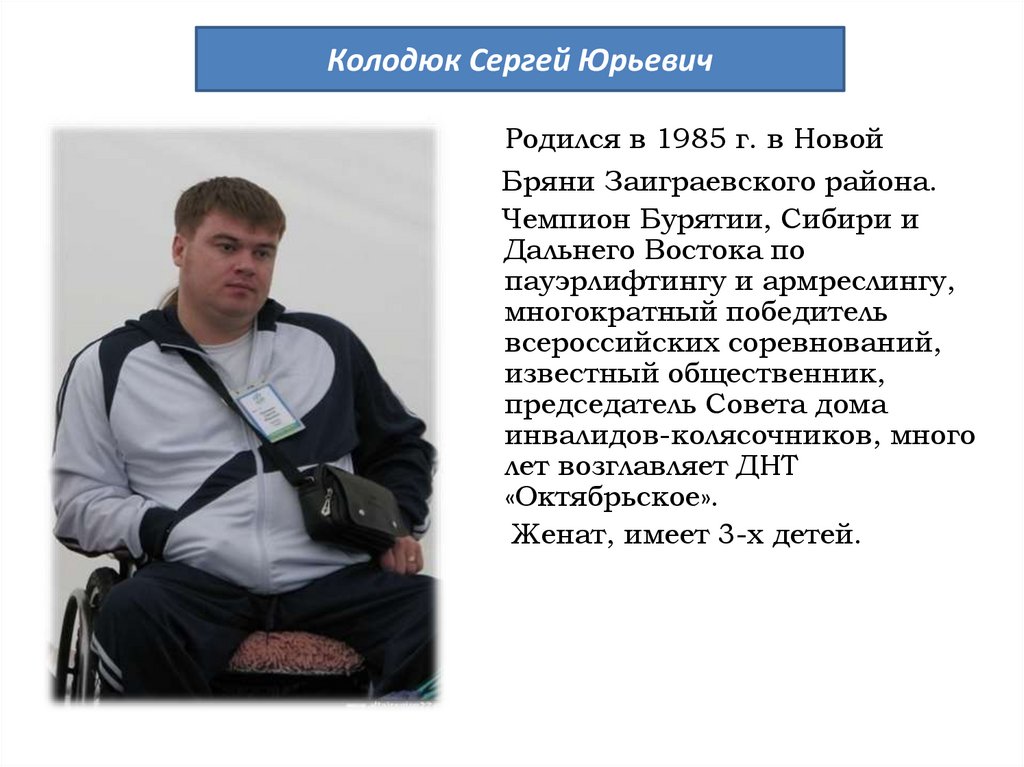 Колодюк Сергей ЮрьевичРодился в 1985 г. в Новой