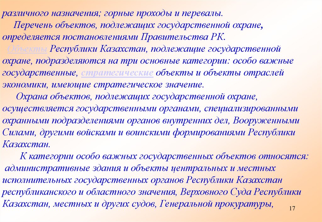 - объекты Республики Казахстан, охраняемые Службой