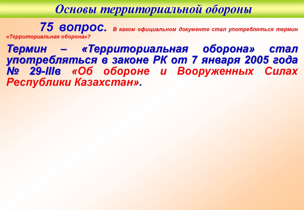 Основы территориальной обороны75 вопрос. В каком официальном документе стал употребляться термин
