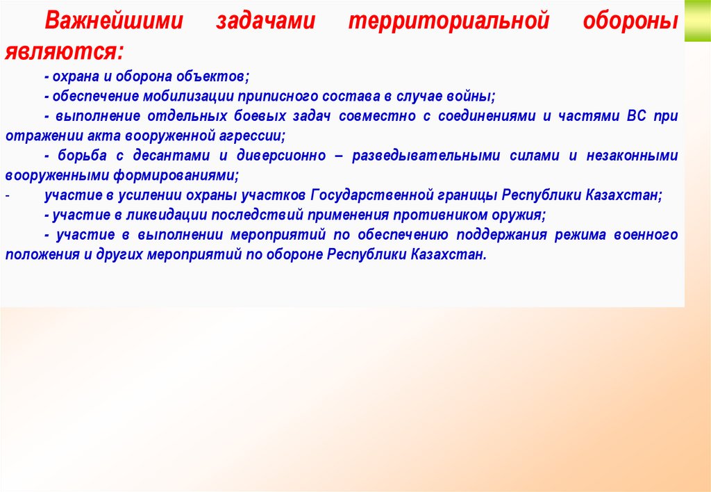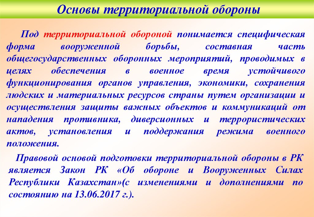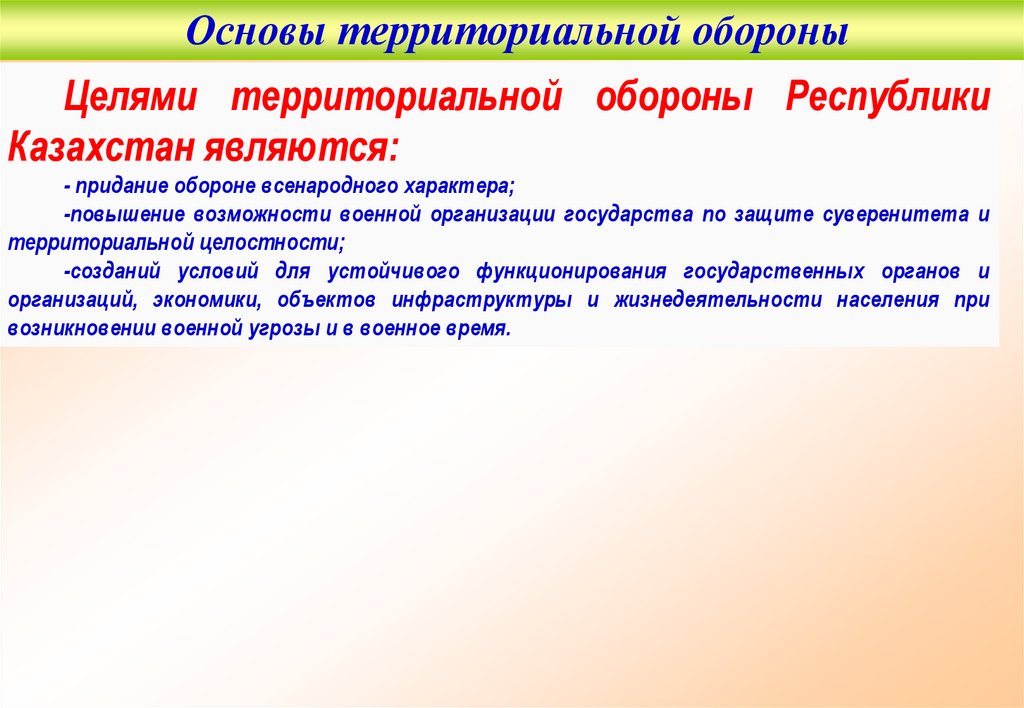 Основы территориальной обороныЦелями территориальной обороны Республики