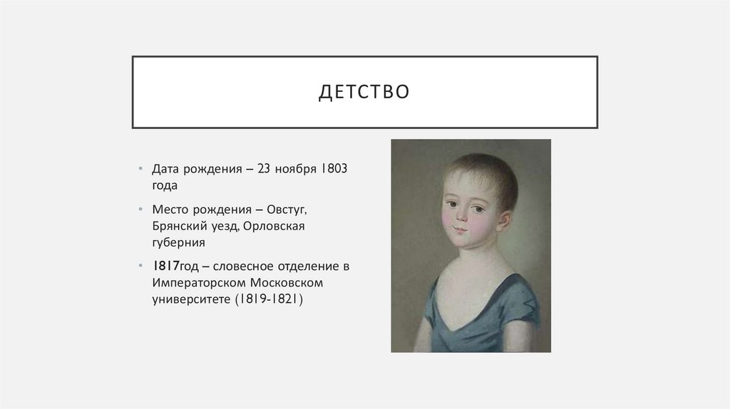 ДЕТСТВО• Дата рождения – 23 ноября 1803