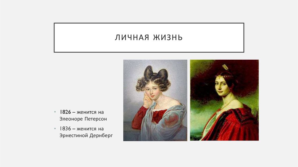 ЛИЧНАЯ ЖИЗНЬ• 1826 – женится на