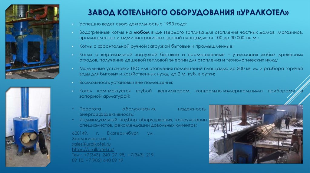 ЗАВОД КОТЕЛЬНОГО ОБОРУДОВАНИЯ «УРАЛКОТЕЛ»Успешно ведет свою деятельность с 1993 года;