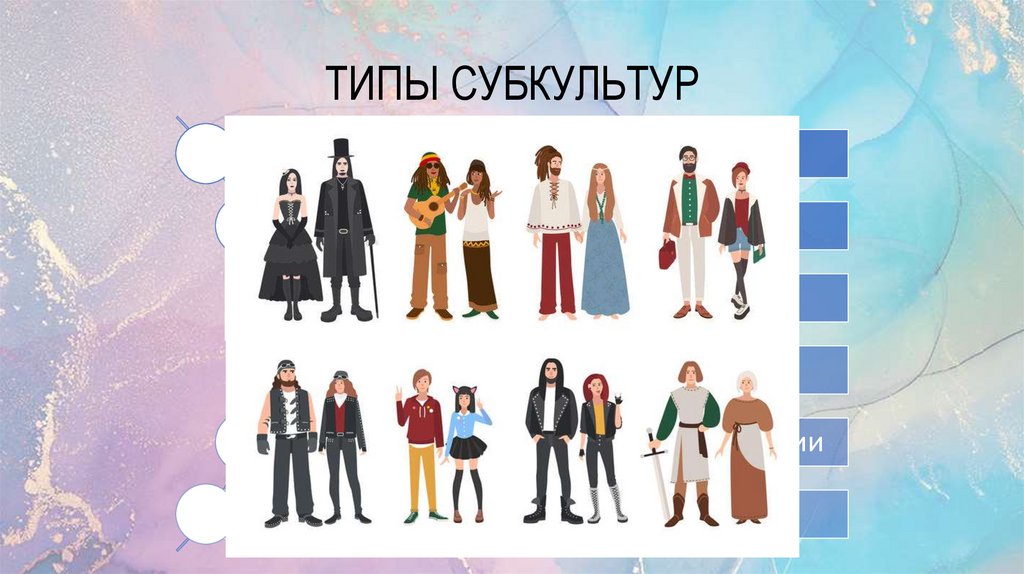 ТИПЫ СУБКУЛЬТУРПо типам общностей их носителей