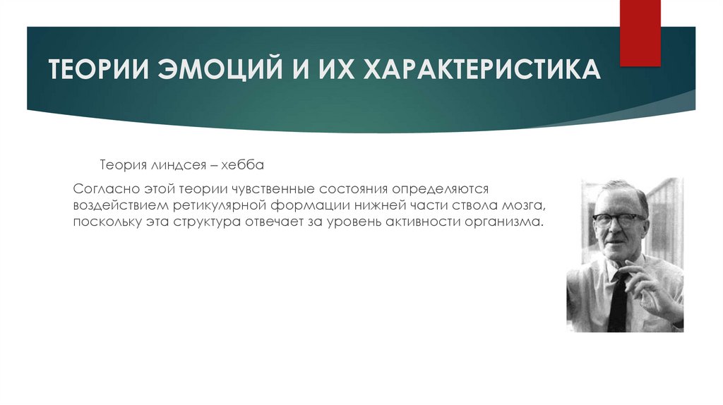 ТЕОРИИ ЭМОЦИЙ И ИХ ХАРАКТЕРИСТИКАТеория линдсея – хебба