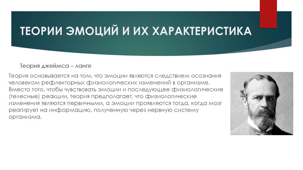 ТЕОРИИ ЭМОЦИЙ И ИХ ХАРАКТЕРИСТИКАТеория джеймса – ланге