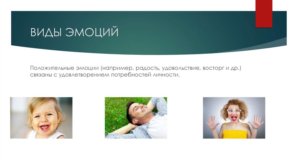 ВИДЫ ЭМОЦИЙПоложительные эмоции (например, радость, удовольствие, восторг и др.)